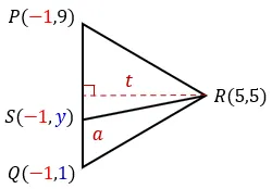 Dengan mencari selisih dari absis titik $R$ dan $S$ kita akan dapatkan besar tinggi($t$) dari segitiga $RSQ$ :